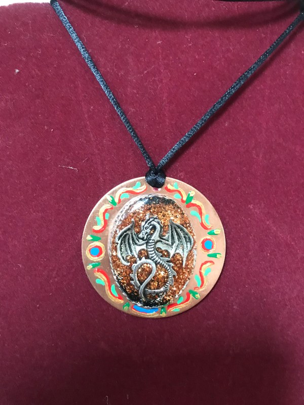 Proprietà: il drago da sempre rappresenta la protezione familiare, dona armonia e come protezione è doppia essendo su una base di rame.